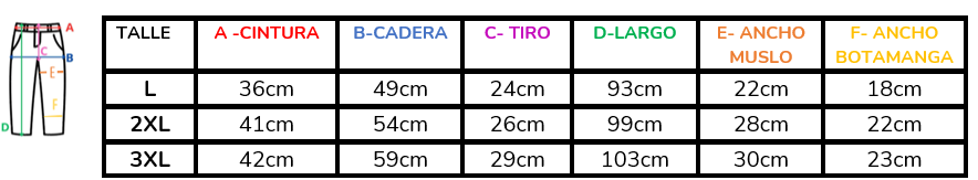 (A la hora de elegir tu talle, debes tener en cuenta que las mismas son tomadas en plano, por lo cual debes multiplicarlas x2 para saber el contorno real y también tener en cuenta la elasticidad de la tela).