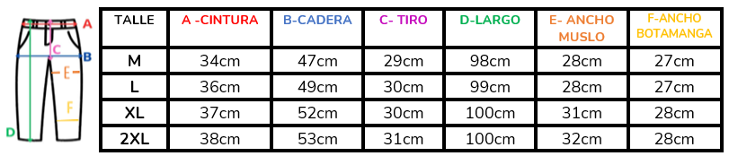 (A la hora de elegir tu talle, debes tener en cuenta que las mismas son tomadas en plano, por lo cual debes multiplicarlas x2 para saber el contorno real y también tener en cuenta la elasticidad de la tela).