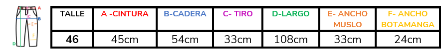 (A la hora de elegir tu talle, debes tener en cuenta que las mismas son tomadas en plano, por lo cual debes multiplicarlas x2 para saber el contorno real y también tener en cuenta la elasticidad de la tela).