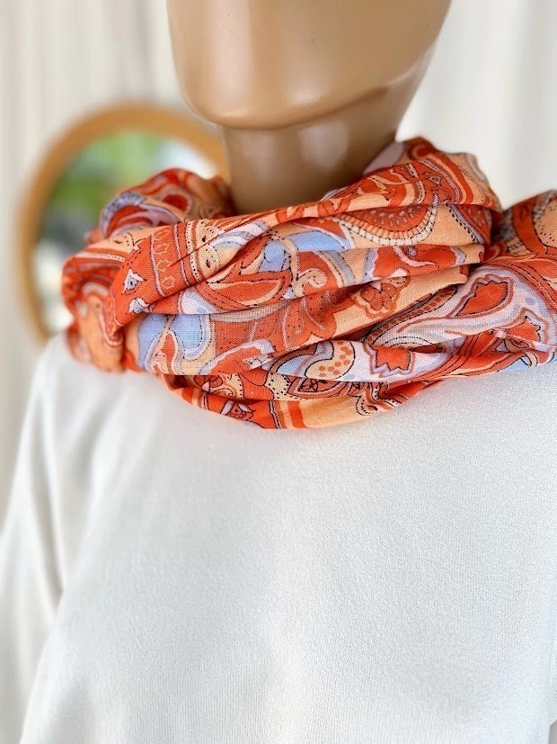 💙🧣LIGERA, SUAVE Y LLENA DE FRESCURA. ESTA PASHMINA EN TONOS NARANJA ES EL COMPLEMENTO IDEAL PARA SUMAR UN TOQUE DE COLOR Y ELEGANCIA A TUS LOOKS ✨ PERFECTA PARA LLEVAR SIEMPRE CON VOS Y REALZAR CUALQUIER CONJUNTO CON SUAVIDAD Y ESTILO. ☁️🌿