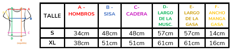 (A la hora de elegir tu talle, debes tener en cuenta que las mismas son tomadas en plano, por lo cual debes multiplicarlas x2 para saber el contorno real y también tener en cuenta la elasticidad de la tela).