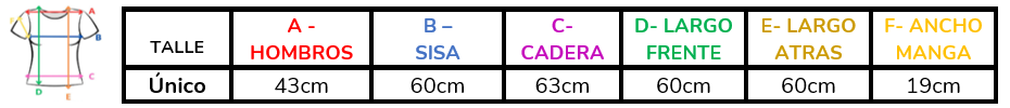 (A la hora de elegir tu talle, debes tener en cuenta que las mismas son tomadas en plano, por lo cual debes multiplicarlas x2 para saber el contorno real y también tener en cuenta la elasticidad de la tela).