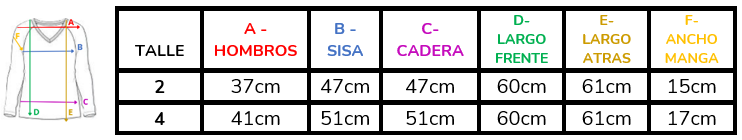 (A la hora de elegir tu talle, debes tener en cuenta que las mismas son tomadas en plano, por lo cual debes multiplicarlas x2 para saber el contorno real y también tener en cuenta la elasticidad de la tela).