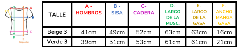 (A la hora de elegir tu talle, debes tener en cuenta que las mismas son tomadas en plano, por lo cual debes multiplicarlas x2 para saber el contorno real y también tener en cuenta la elasticidad de la tela).