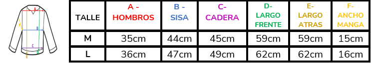 (A la hora de elegir tu talle, debes tener en cuenta que las mismas son tomadas en plano, por lo cual debes multiplicarlas x2 para saber el contorno real y también tener en cuenta la elasticidad de la tela).