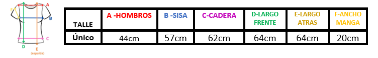(A la hora de elegir tu talle, debes tener en cuenta que las mismas son tomadas en plano, por lo cual debes multiplicarlas x2 para saber el contorno real y también tener en cuenta la elasticidad de la tela).
