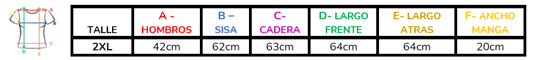 (A la hora de elegir tu talle, debes tener en cuenta que las mismas son tomadas en plano, por lo cual debes multiplicarlas x2 para saber el contorno real y también tener en cuenta la elasticidad de la tela).