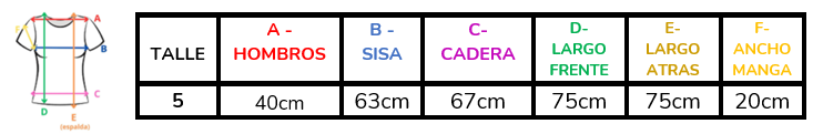 (A la hora de elegir tu talle, debes tener en cuenta que las mismas son tomadas en plano, por lo cual debes multiplicarlas x2 para saber el contorno real y también tener en cuenta la elasticidad de la tela).