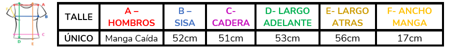 (A la hora de elegir tu talle, debes tener en cuenta que las mismas son tomadas en plano, por lo cual debes multiplicarlas x2 para saber el contorno real y también tener en cuenta la elasticidad de la tela).