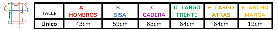 (A la hora de elegir tu talle, debes tener en cuenta que las mismas son tomadas en plano, por lo cual debes multiplicarlas x2 para saber el contorno real y también tener en cuenta la elasticidad de la tela).
