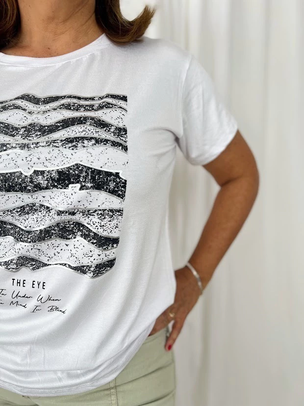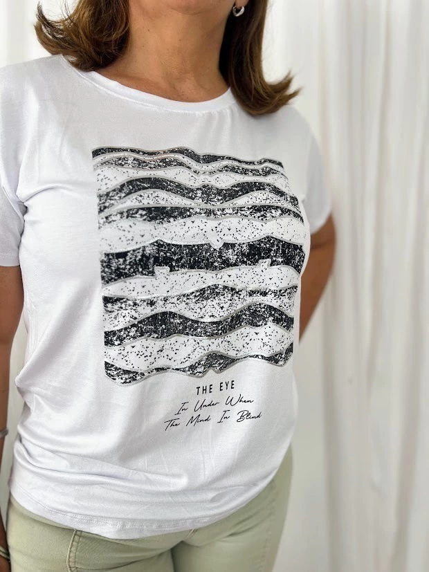 🌼✨REMERA OLAS: ESTILO Y COMODIDAD EN UNA SOLA PRENDA 🌼✨ESTA REMERA MANGA CORTA CON ESTAMPA AL FRENTE LE DA UN TOQUE ÚNICO A TU GUARDARROPA. SU DISEÑO MODERNO Y FRESCO LA CONVIERTE EN LA OPCIÓN PERFECTA PARA CUALQUIER OCASIÓN. 😍👚