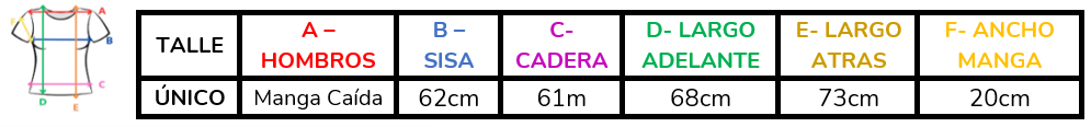 (A la hora de elegir tu talle, debes tener en cuenta que las mismas son tomadas en plano, por lo cual debes multiplicarlas x2 para saber el contorno real y también tener en cuenta la elasticidad de la tela).