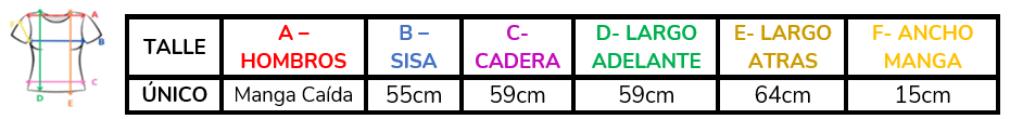 (A la hora de elegir tu talle, debes tener en cuenta que las mismas son tomadas en plano, por lo cual debes multiplicarlas x2 para saber el contorno real y también tener en cuenta la elasticidad de la tela).