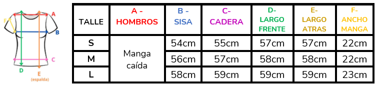 (A la hora de elegir tu talle, debes tener en cuenta que las mismas son tomadas en plano, por lo cual debes multiplicarlas x2 para saber el contorno real y también tener en cuenta la elasticidad de la tela).