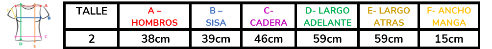 (A la hora de elegir tu talle, debes tener en cuenta que las mismas son tomadas en plano, por lo cual debes multiplicarlas x2 para saber el contorno real y también tener en cuenta la elasticidad de la tela).