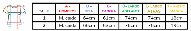 (A la hora de elegir tu talle, debes tener en cuenta que las mismas son tomadas en plano, por lo cual debes multiplicarlas x2 para saber el contorno real y también tener en cuenta la elasticidad de la tela).