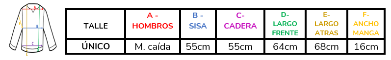 (A la hora de elegir tu talle, debes tener en cuenta que las mismas son tomadas en plano, por lo cual debes multiplicarlas x2 para saber el contorno real y también tener en cuenta la elasticidad de la tela).