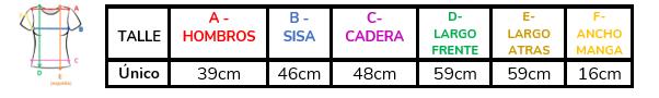(A la hora de elegir tu talle, debes tener en cuenta que las mismas son tomadas en plano, por lo cual debes multiplicarlas x2 para saber el contorno real y también tener en cuenta la elasticidad de la tela).