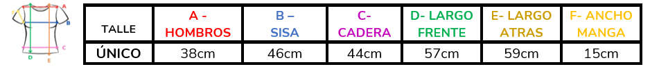 (A la hora de elegir tu talle, debes tener en cuenta que las mismas son tomadas en plano, por lo cual debes multiplicarlas x2 para saber el contorno real y también tener en cuenta la elasticidad de la tela).