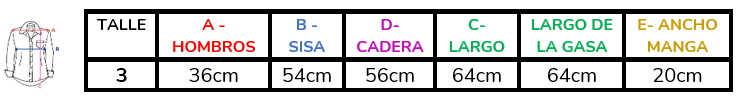 (A la hora de elegir tu talle, debes tener en cuenta que las mismas son tomadas en plano, por lo cual debes multiplicarlas x2 para saber el contorno real y también tener en cuenta la elasticidad de la tela).