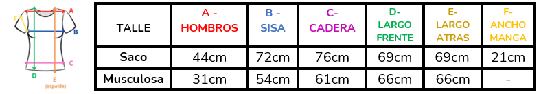(A la hora de elegir tu talle, debes tener en cuenta que las mismas son tomadas en plano, por lo cual debes multiplicarlas x2 para saber el contorno real y también tener en cuenta la elasticidad de la tela).