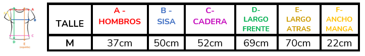 Aclaración: las medidas se corresponden con la musculosa, el saco es ligeramente más amplio.