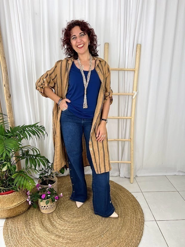 ESTE MODELO A RAYAS CON ESCOTE V CON UN BOTÓN DE MADERA QUE LE OTORGA UN TOQUE DISTINTO. SUS MANGAS SON 3/4 REGULABLES Y CUENTA CON PRÁCTICOS BOLSILLOS QUE OFRECEN FUNCIONALIDAD SIN SACRIFICAR EL ESTILO. 🌼 IDEAL PARA DIVERSAS OCASIONES, UNA PRENDA QUE NO PUEDE FALTAR EN TU GUARDARROPA. 😍✨