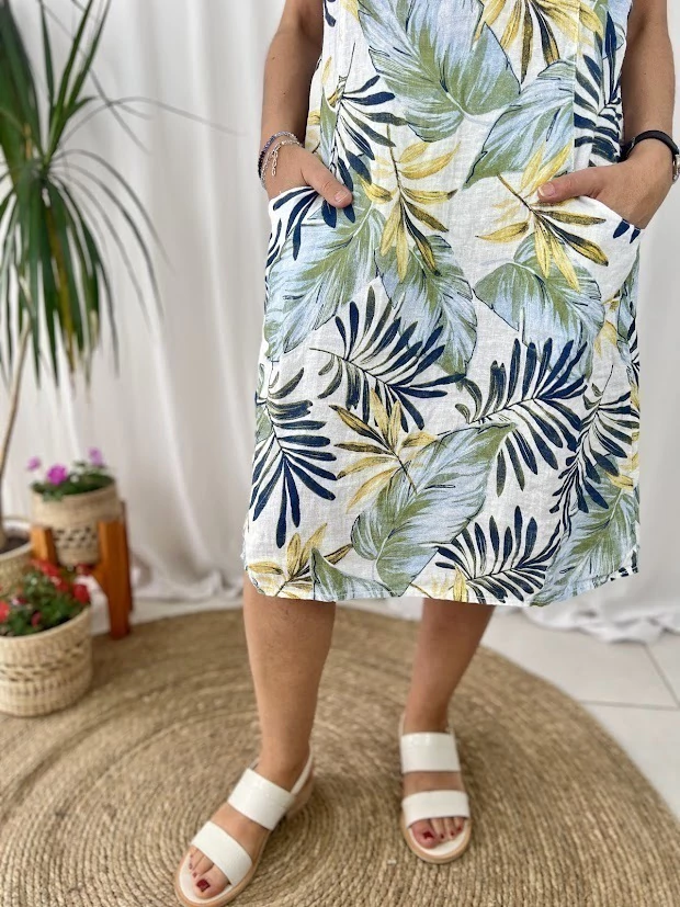 SU HERMOSO ESTAMPADO REALZA TU BELLEZA. VIENE CON PRÁCTICOS BOLSILLOS, ESTE VESTIDO COMBINA ESTILO Y FUNCIONALIDAD. LA PARTE POSTERIOR CUENTA CON COSTURAS Y RIBB (UN TEJIDO ELASTIZADO) QUE ENTALLA Y ESTILIZA TU FIGURA, BRINDANDO UN AJUSTE IMPECABLE. 😍✨