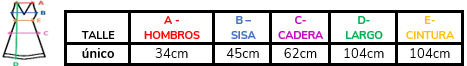 (A la hora de elegir tu talle, debes tener en cuenta que las mismas son tomadas en plano, por lo cual debes multiplicarlas x2 para saber el contorno real y también tener en cuenta la elasticidad de la tela).
